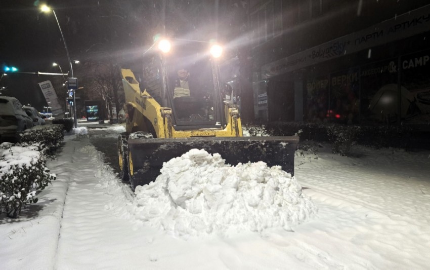 Снегопочистващата техника работи през цялата нощ, интензивността на почистването бе увеличена в 4ч. тази сутрин. Екипи от Общината също обхождат целия град и координират локализирането на машините.