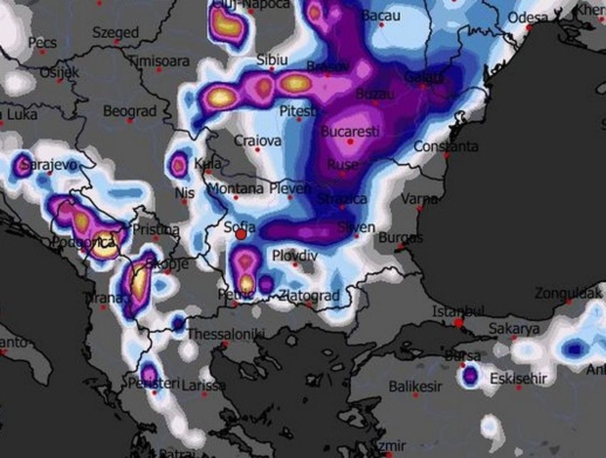 В централните райони на страната ще паднат значителни количества дъжд, а новата снежна покривка в триъгълника Русе-Плевен-Велико Търново ще варира между 10 и 20-30 сантиметра. Спрямо надморската височина, в планините и най-вече в Родопите и Стара планина ще се акумулират до 30-40 сантиметра нов сняг.