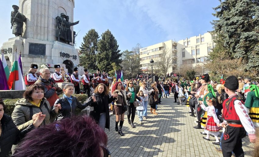 Край паметника „Майка България“ се изви голямо хоро, а много настроение създадоха солистките, танцьорите и музикантите от Професионален фолклорен ансамбъл „Искра“. Интерес за всички бе и откритата изложба с оръжия, артефакти и документи, подредена край монумента.