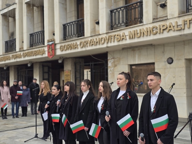 Пред сградата на Община Горна Оряховица кметът Николай Рашков и председателят на Общинския съвет Огнян Стоянов тържествено издигнаха националния флаг, под съпровода на химна на Република България, изпълнен от Вокален състав „Графити.