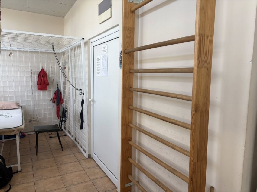 Обособен е кът за кинезитерапия и „Клетка на Роше“. Специалистите извършват парафинотерапия и компресотерапия.