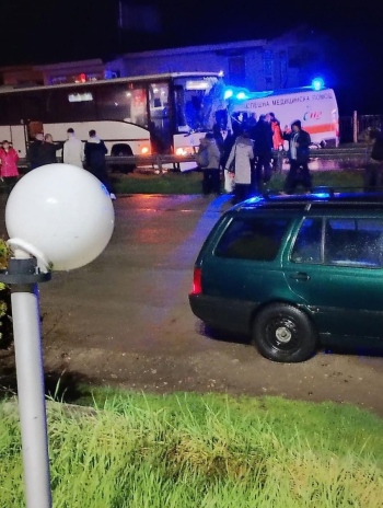 Автобус с работници се сблъсъка с линейка на главният път София - Варна край великотърновското село Момин сбор. Две линейки с раждаща жена и болно дете са пътували от Павликени към областната болница в Търново. Втората линейка се е ударила челно в автобуса, пътуващ към Севлиево. Детето, пътувало в катастрофиралата линейка, не е пострадало. Веднага е претоварено в другата и всички са откарани за преглед и уточняване на състоянието им в областната болница. На място има полиция, пожарни и още линейки. Инцидентът е станал на мокра настилка, а линейката е била с пуснати светлини и сигнализация.