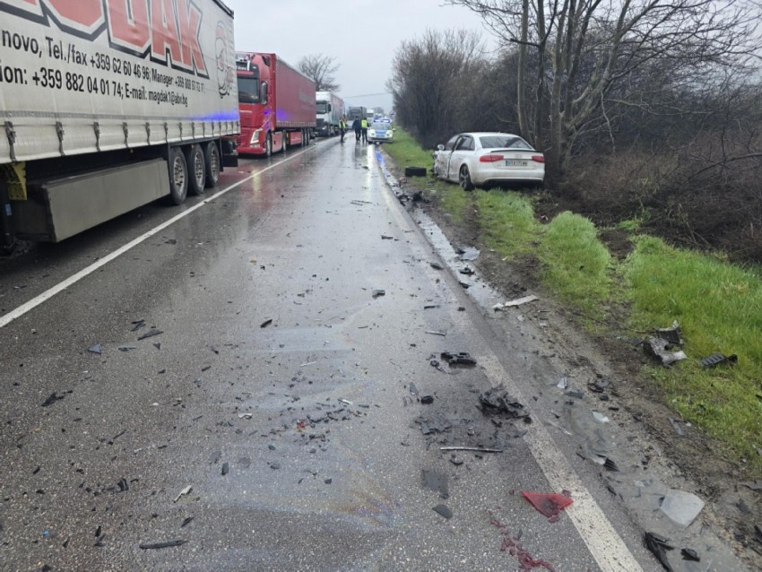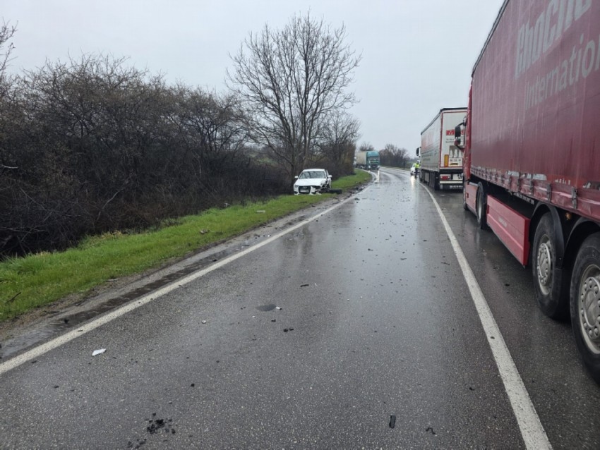 Верижна катастрофа с три автомобила блокира пътя РУсе - Велико Търново, между селата Поликраище и Самоводене тази сутрин. Колите са се сблъскали на мокър участък. Двигателят на единият автомобил, буквално е излетял на 50 метра от произшествието. Четирима души са ранени и откарани в Спешна помощ., Уточнява се тяхното състояния. Пътят Русе - Велико Търново, в този участък е блокиран. Обходният маршрут е през село Първомайци.