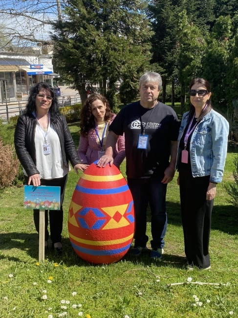 Великденски яйца, ръчно изрисувани от потребителите на социални услуги на територия на Община Горна Оряховица, украсиха централните части на града.
