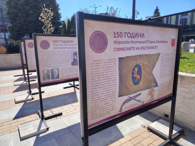 Изложба с информационни табла, посветена на 150 години от Априлското въстание е разположена на площад „Георги Измирлиев“. Експозицията е подготвена от Общината, съвместно с Историческия музей и разказва за ролята на Горна Оряховица през бунтовната пролет на 1876 г, като център на Първи революционен окръг. Изложбата разказва за символите на въстанието, бунтовните горнооряховски фамилии, за революционната столица и щаба на Първи революционен окръг, за видните горнооряховчани, както и за Великата седмица на 1876 г. – дните след Великден, в която вместо да празнуват, хората в града били притихнали пред надвисналата опасност.