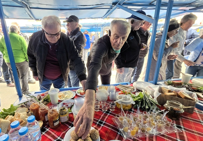 Организаторите Камен Илиев и Красимир Йорданов, заедно с производителите приветстваха гостите по стар български обичай, както подобава - с питка и мед.
