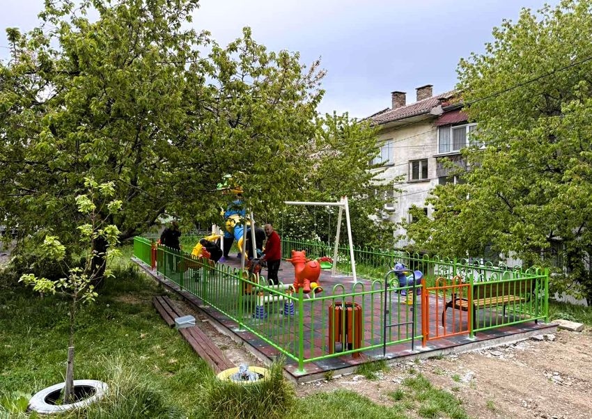 Дейностите са пред завършване - уредите и съоръженията за игра са монтирани, положена е безопасна за малчуганите настилка, поставена е и оградата. Предстои цялостното почистване.