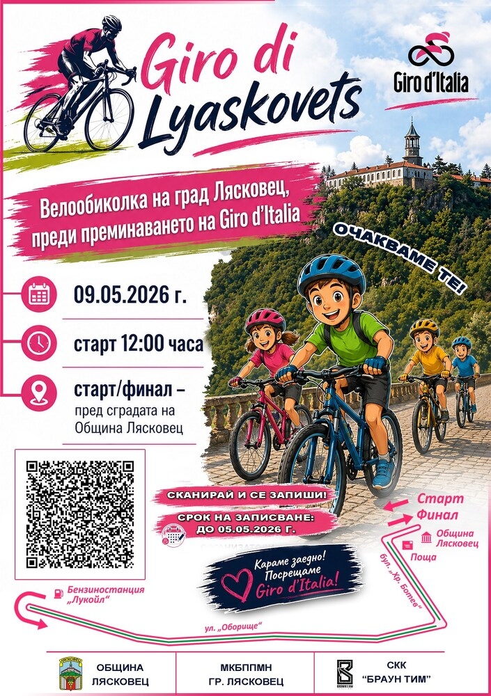 Джиро д'Италия (Giro d'Italia) 2026 започва историческия си старт от България на 8 май. Джиро д'Италия (Giro d'Italia) е едно от най-престижните и трудни състезания в света на колоезденето. За първи път в историята си през 2026 г. Джиро д'Италия стартира от държава в Източна Европа – България. Това е огромно признание и исторически момент, който ще постави страната ни в центъра на световния спортен елит за три дни. Излъчва се в над 190 държави и се гледа от близо 800 милиона зрители. Продължителността му е 21 етапа в рамките на 23 дни, а дистанцията е общо около 3500 километра.На 9 май 2026 г. Лясковска община ще бъде една от най-горещите точки на втория етап от Джиро д'Италия (Бургас - Лясковец - Велико Търново). Градът ни е ключова част от финалната фаза на етапа. Колоездачите ще преминат през стръмното изкачване към Лясковския манастир „Св. св. Петър и Павел“, но преди самото изкачване е предвиден междинен спринт в самия град Лясковец – по околовръстния път и по бул. „Христо Ботев“, по ул. „Манастирска“, покрай Петропавловски манастир в землището на община Лясковец до разклона за Шереметя и Арбанаси, слизане до с. Шереметя и продължаване към гр. Велико Търново.Организаторите и държавните институции информират обществеността за ключови промени в трафика, безопасността и възможностите за наблюдение на състезанието.Поради мащаба на събитието лясковчани и гости трябва да знаят, че като публика на събитието е препоръчително да се придвижват до точките за наблюдение пеша. Всички пресечни улици по маршрута ще бъдат затворени от органите на реда и пътна полиция и ще бъдат въведени сериозни промени в движението. Трасетата ще бъдат напълно затворени за автомобили часове преди преминаването на колоната.Гражданите се призовават да не пресичат загражденията по време на преминаването на колоездачите.Преди да влязат в наша територия, колоездачите ще преминат през община Елена по главния път Елена – Велико Търново през Мерданя и покрай село Драгижево.Преминаването през Мерданя е по ул. „Васил Левски“, пл. „Свобода“ и ул. „Хр. Ботев“, които ще бъдат затворени за всякакви превозни средства още от 13:00 ч. до пълното изтегляне на охранителния ескорт (около 18:30 ч.), когато се очаква приключване на мероприятието.Централният площад на Мерданя е отлично място за наблюдение, тъй като там колоната често се разтяга преди началото на техничните завои към Лясковец. Организаторите призовават да не се паркират автомобили по пътното платно на главната улица, за да се осигури безопасно разстояние от поне 1 метър от асфалтовата настилка.Часът на преминаване на колоездачите зависи от средната скорост, с която се движат през етапа. Колоната на Джиро д'Италия се очаква да влезе в Мерданя около 16:27 ч.Пътят на колоната към Лясковец преминава покрай село Драгижево на изхода за с. Мерданя и входа на Драгижево откъм Лясковец в близост до фирма „Аркус“ – и там пътят ще бъде затворен.В Лясковец движението се затваря в 12:00 ч. Очаква се колоната да влезе в гр. Лясковец по ул. „Оборище“ /околовръстен път в двете платна/ от Бензиностанция „Лукойл“ около 16:38 ч. Преминава по бул. „Христо Ботев“ /и в двете платна/ през центъра на град Лясковец, пресичайки кръстовището на пл. „Възраждане“ и ул. „Васил Левски“ и отправяйки се по ул. „Манастирска“. Около 16:46 ч. колоездачите прогнозно трябва да бъдат в район