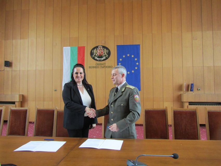 Споразумение за сътрудничество подписаха Областният управител на Велико Търново Юлия Ликоманова– Мутафчиева и бригаден генерал Станчо Кайков, началник на Националния военен университет „Васил Левски“.