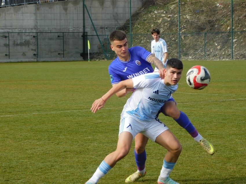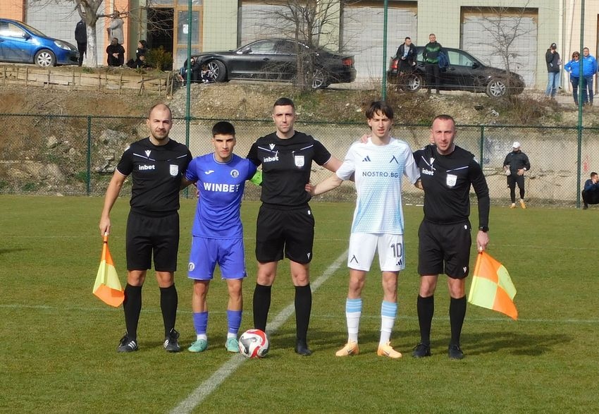 Младият страж на етърци пази отлично. Той извади и още един-два удара, но в 30-ата минута „сините“ откриха. Кирил Котев проби отляво и поднесе топката на Кристиян Йовов (син на Христо Йовов), който откри – 0:1. „Етър“ се отчете с два удара на Кристиян Величков и един на Рафаел Чолаков по посока на вратата, които не донесоха нищо.