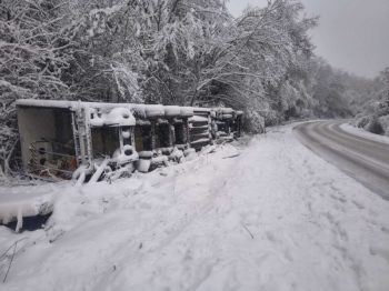 Тир, превозващ тонове портокали се обърна на пътя София - Варна край стражишкото село Кавлак