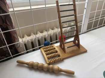 Обособен е кът за кинезитерапия и „Клетка на Роше“. Специалистите извършват парафинотерапия и компресотерапия.