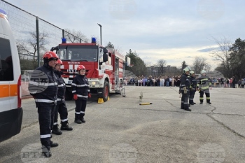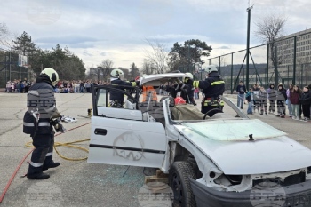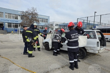 Съвместно демонстративно занятие проведоха Районната служба "Пожарна безопасност и защита на населението" и Доброволно формирование ВТ 47-01 при Община Свищов в двора на Средно училище „Димитър Благоев“. Преди това учениците направиха симулация на учебна евакуация при пожар.