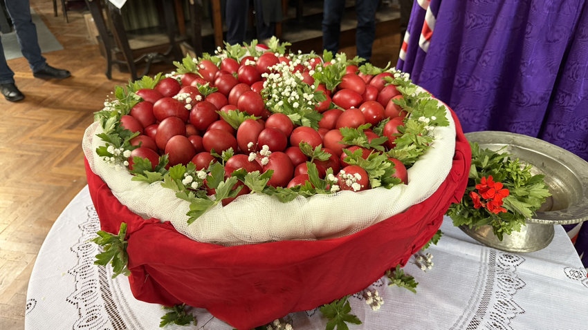 Ритуалът по освещаването беше отслужен в Катедралния храм „Рождество Богородично”. Дарените яйца са боядисани единствено в червен цвят, спазвайки християнската традиция.