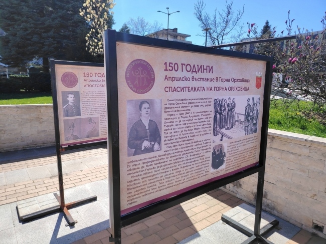 Изложба с информационни табла, посветена на 150 години от Априлското въстание е разположена на площад „Георги Измирлиев“. Експозицията е подготвена от Общината, съвместно с Историческия музей и разказва за ролята на Горна Оряховица през бунтовната пролет на 1876 г, като център на Първи революционен окръг. Изложбата разказва за символите на въстанието, бунтовните горнооряховски фамилии, за революционната столица и щаба на Първи революционен окръг, за видните горнооряховчани, както и за Великата седмица на 1876 г. – дните след Великден, в която вместо да празнуват, хората в града били притихнали пред надвисналата опасност.