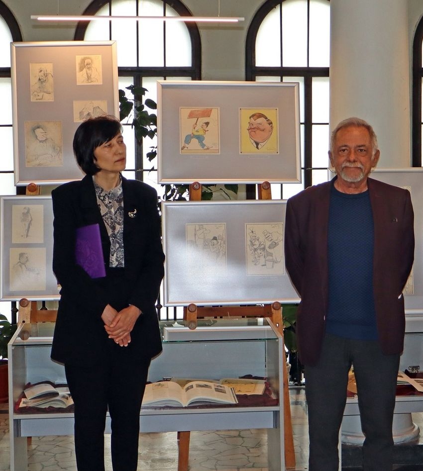 Има хора, които рисуват картини, други създават мелодии, а някои съчетават това и са олицетворение на изкуството, като проф. Христо Цацинов, каза заместник-кметът Нейко Генчев. Грамотата и знакът бяха връчени при откриването на изложбата „Вечният съвременник“ - карикатури, шаржове и рисунки на един от най-ярките български художници Александър Божинов в Регионалната библиотека „П. Р. Славейков”, чийто куратор е проф. Цацинов.