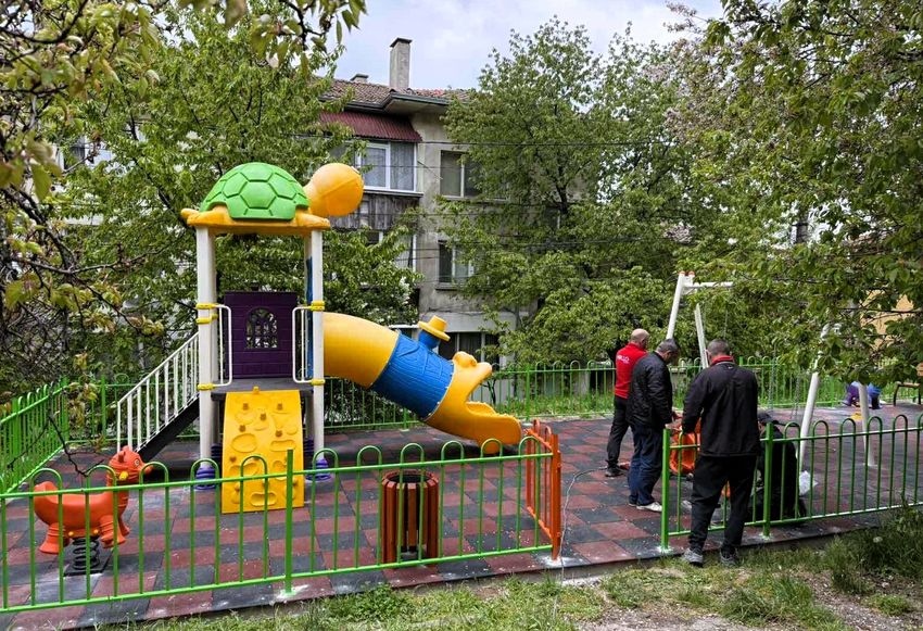 Дейностите са пред завършване - уредите и съоръженията за игра са монтирани, положена е безопасна за малчуганите настилка, поставена е и оградата. Предстои цялостното почистване.