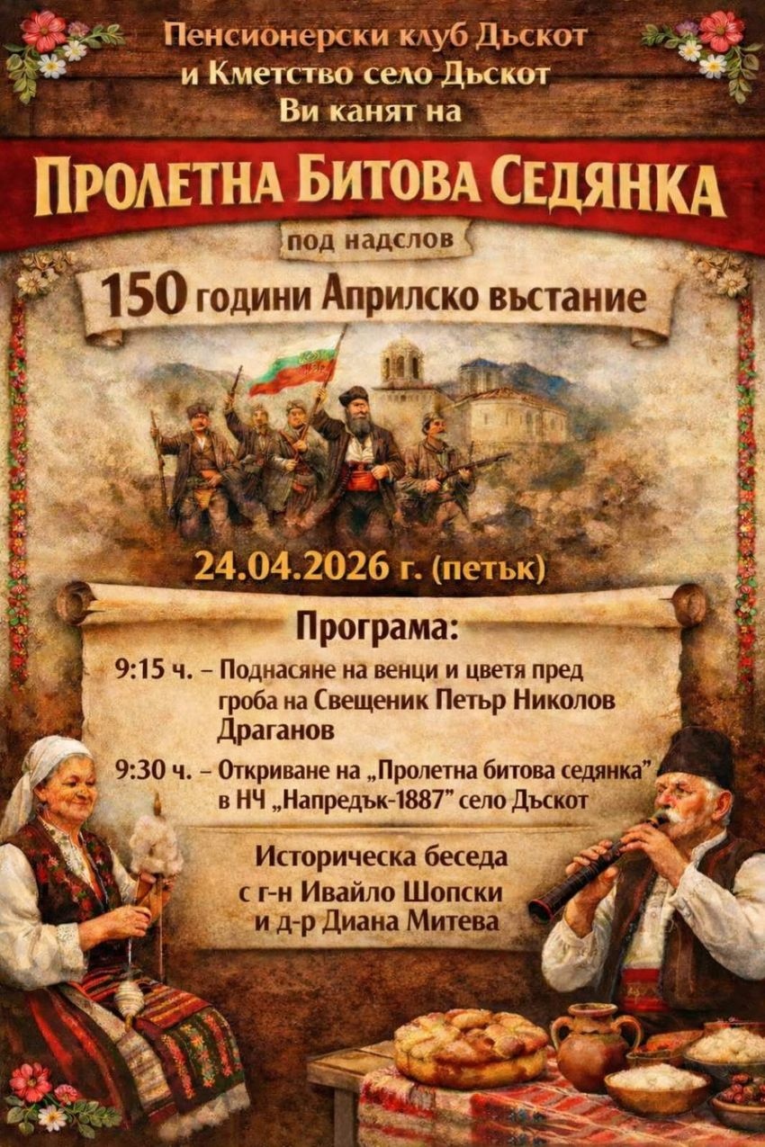 10:00 ч., с. Дъскот, в малкия салон на НЧ „Напредък-1887“
